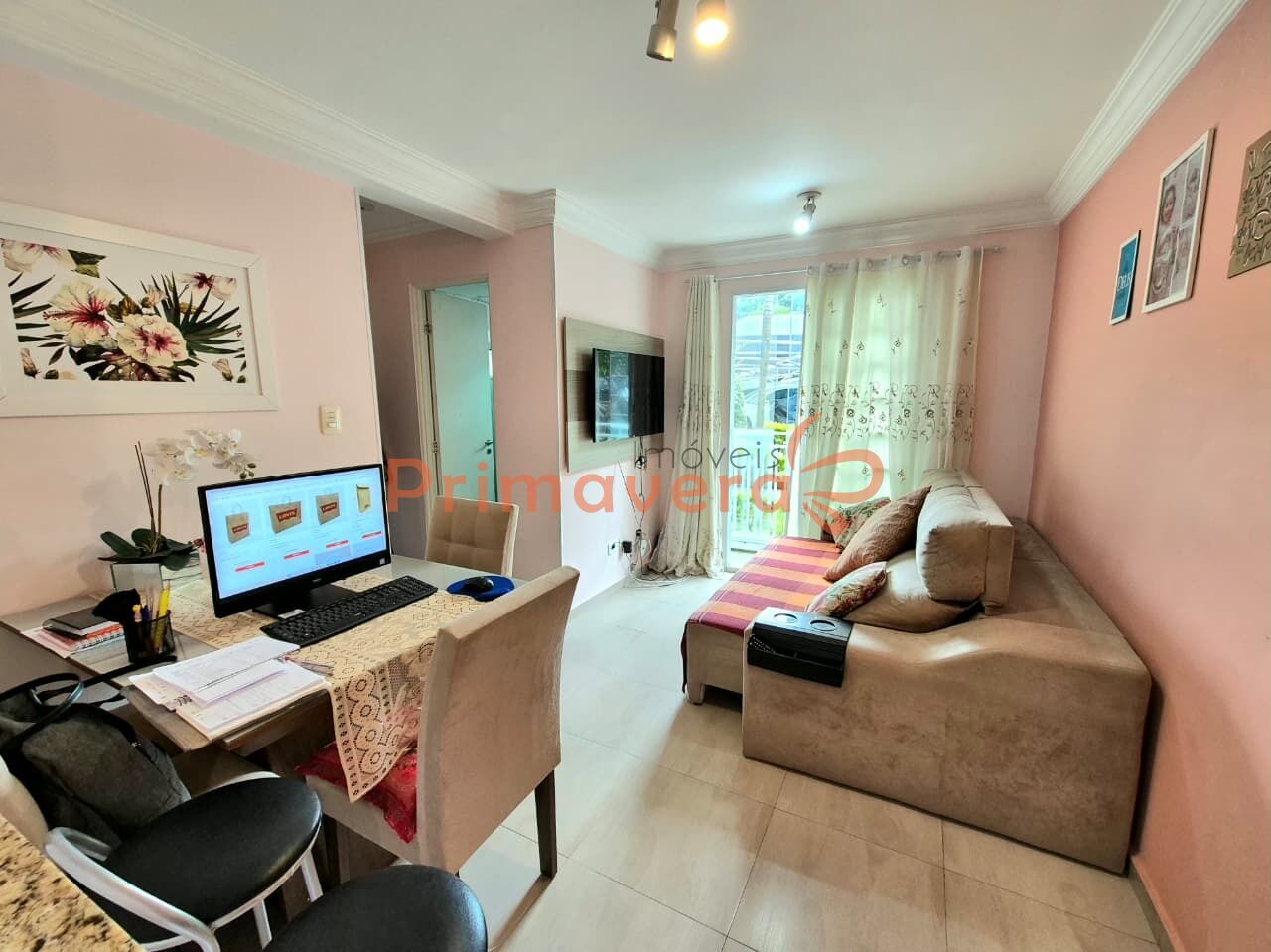 Sala 2 Ambientes com sacada: Espaço versátil e aconchegante, ideal para compor sala de estar e jantar, perfeito para momentos de convivência.